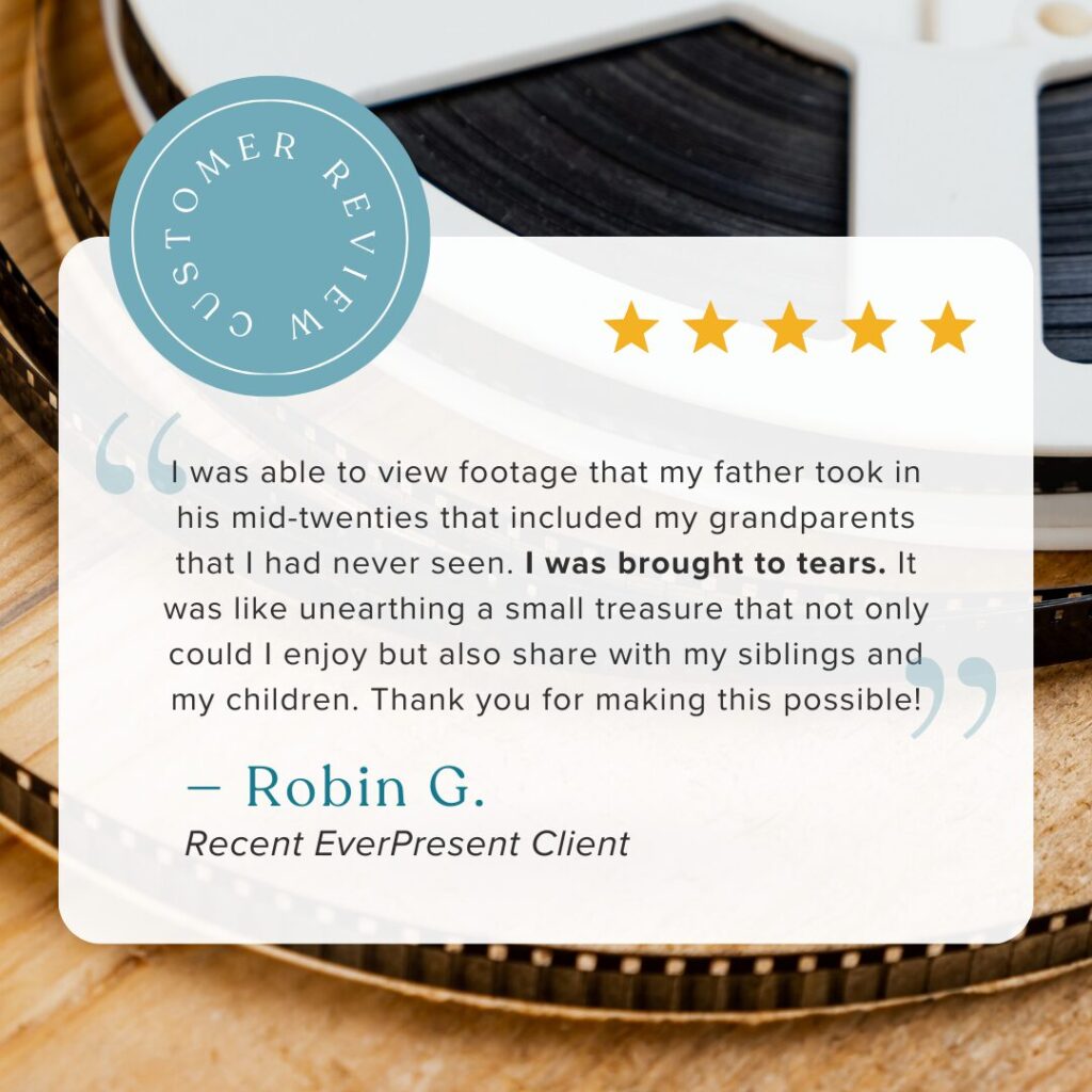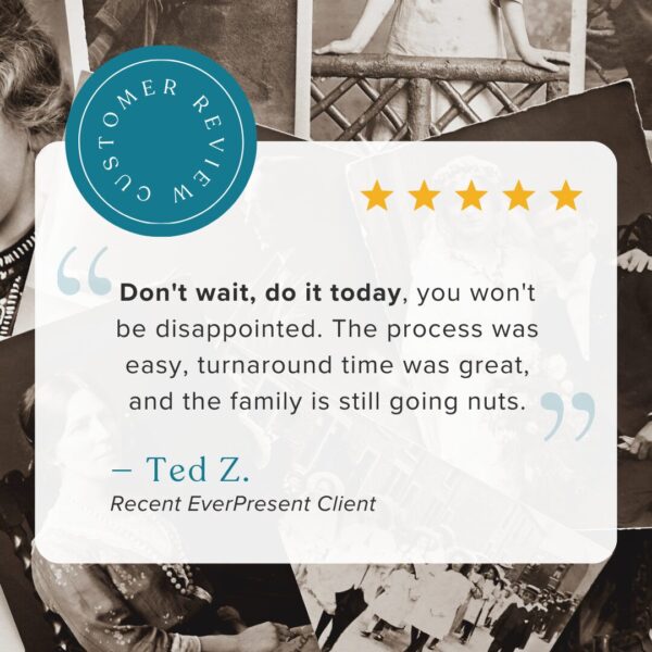 “By making the hard work of digitizing and sharing easy for our clients, we will preserve our world’s history before old formats fade and family stories are lost to time. Our ultimate goal is to make your best memories EverPresent in your life.”